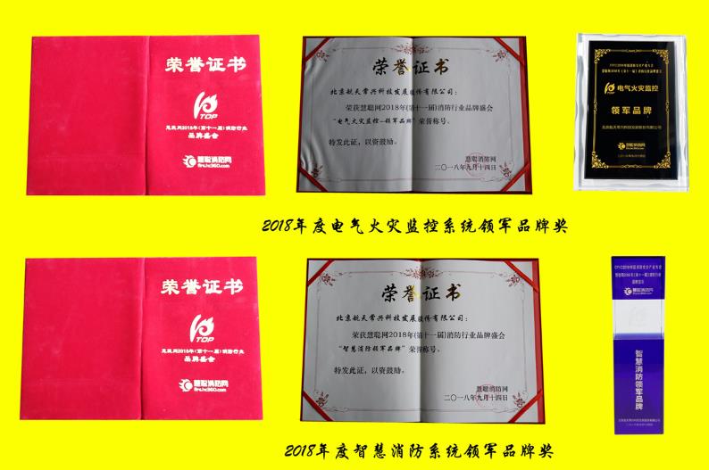 2018年9月14日,北京航天常興董事長楊迺文先生、總經理王德坤女士參加在北京九華山莊舉辦的“2018年度慧聰網(第十一屆)消防行業品牌盛會頒獎盛典。航天常興一舉榮獲電氣火災監控產品、智慧消防產品領軍品牌兩個殊榮!