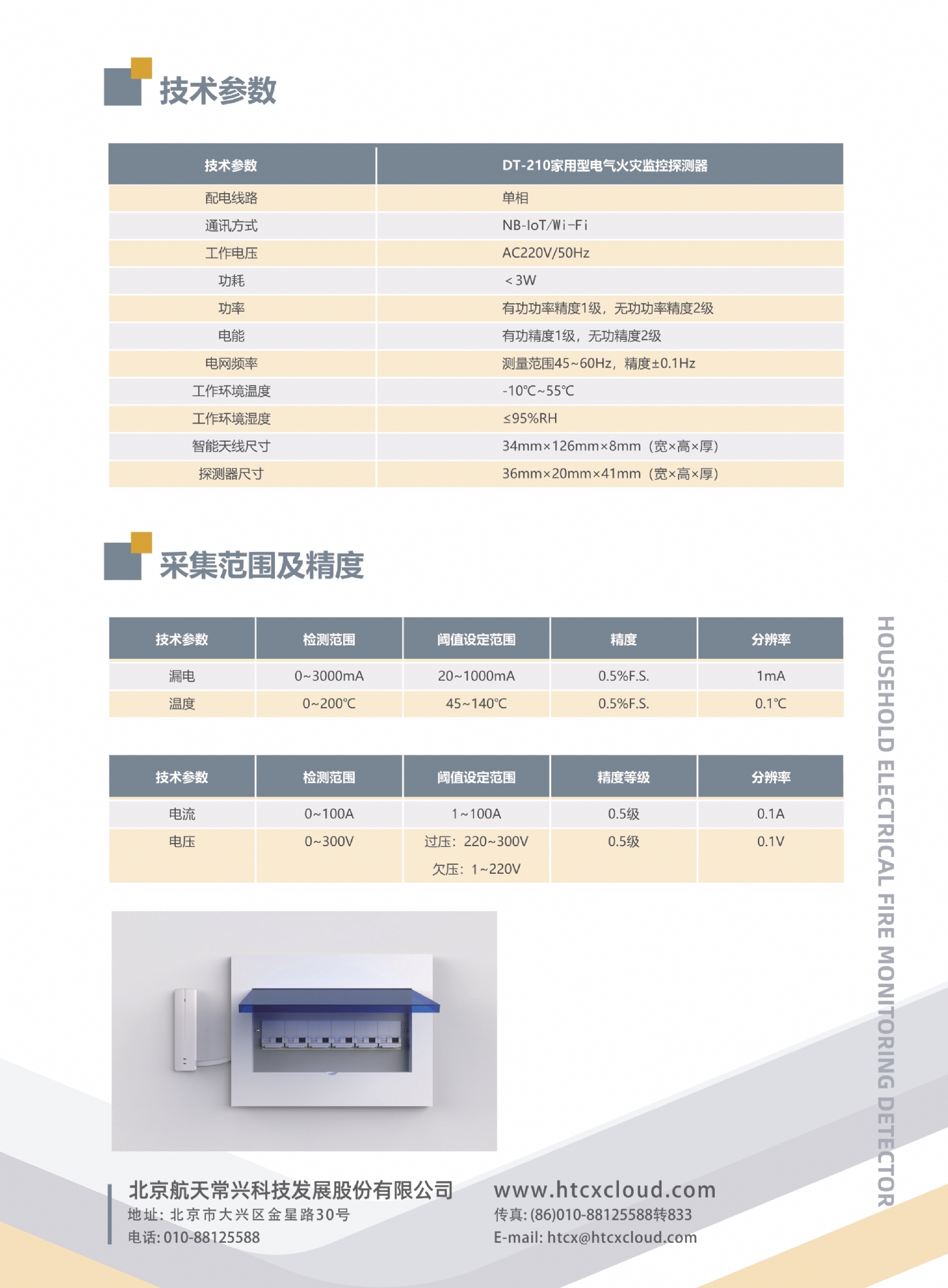 DT-210作為家用型電氣火災監控探測器,采用I0r 阻性漏電檢測技術,可在線監測AC220V的漏電、溫度、電壓、有功功率、視在功率、電網頻率、功率因數等電氣參數,具有高精度電能計量功能,實時監測并通過NB-IoT無線通訊功能實現數據與平臺端或APP端實時同步數據,進行后臺報警及故障提示,可靠性高,抗干擾度強。